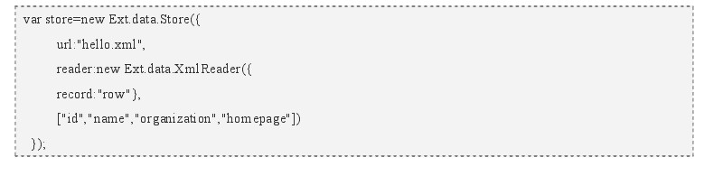 为了把这个x m l数据用ExtJS 的表格Grid进行显示,我们只需要把store部分的内容调整成如下的内容即可: