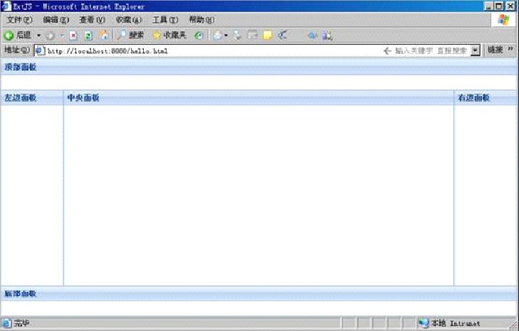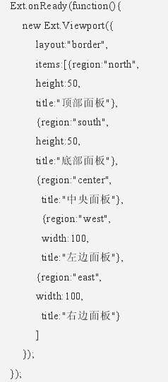 Border 布局由类Ext.layout .BorderLayout 定义,布局名称为border。该布局把容器分成东南西北中五个区域,