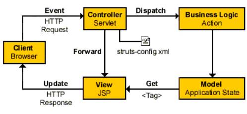 Struts1.2.9源码的主要几个实现类。 Struts是最流行的MVC框架之一, 下图是它的流程示意图。