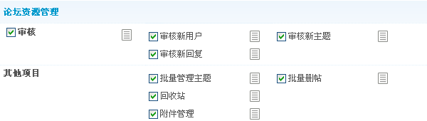 3、论坛资源管理可以设置该管理组对审核及批量管理的权限;