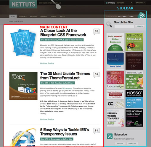 你可能有强烈的愿望去填充这些页面上的空白,但是请不要这么做。“空白”也是相当重要的。你可以看看NetTuts网站是如何有效的使用空白区域的,创建了页面平衡给人一个好的感觉。