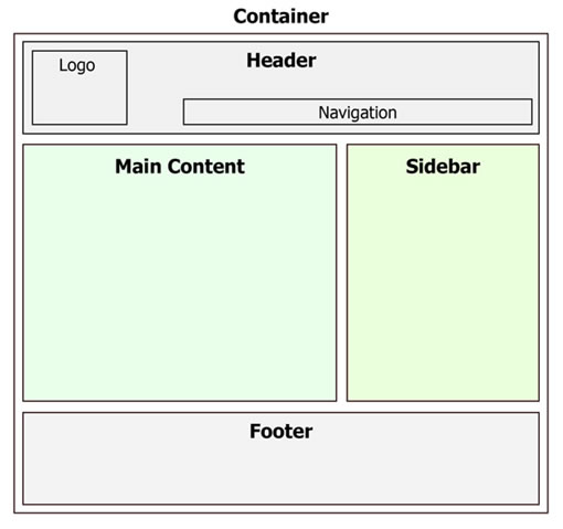 这些是web页面的主要元素。有很多不同的方法去组织它们,但是这种布局也许是最常用的。